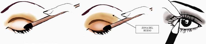 Con la sombra negra, marcamos la línea del párpado inferior (y difuminas), pero no desde el lagrimal, sino desde la mitad hacia el ángulo externo del ojo.